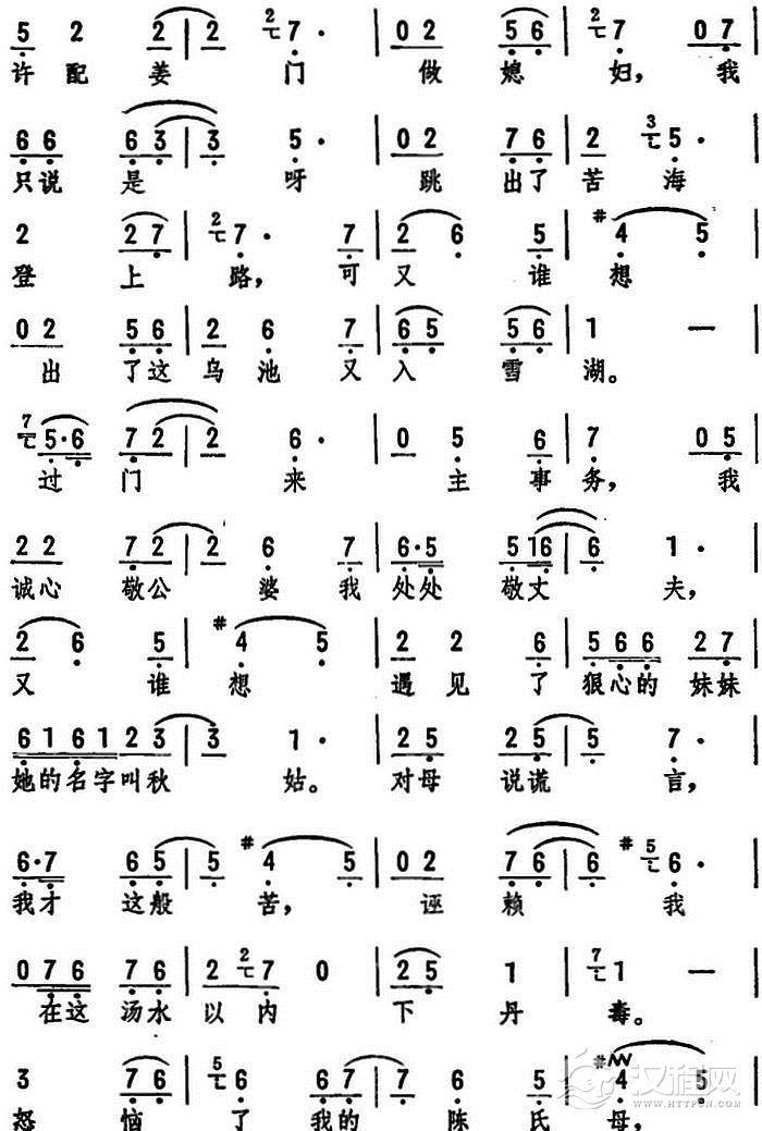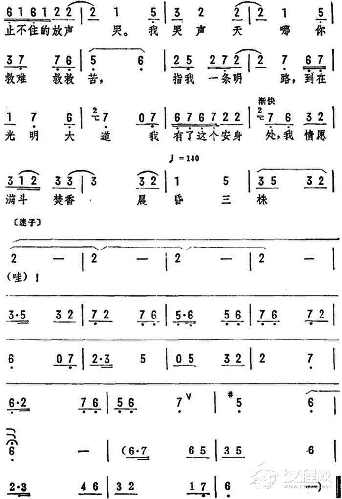 戏曲曲谱千重苦万重恨且莫压心头(《江姐》选段)