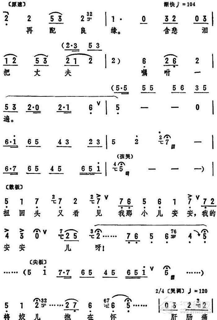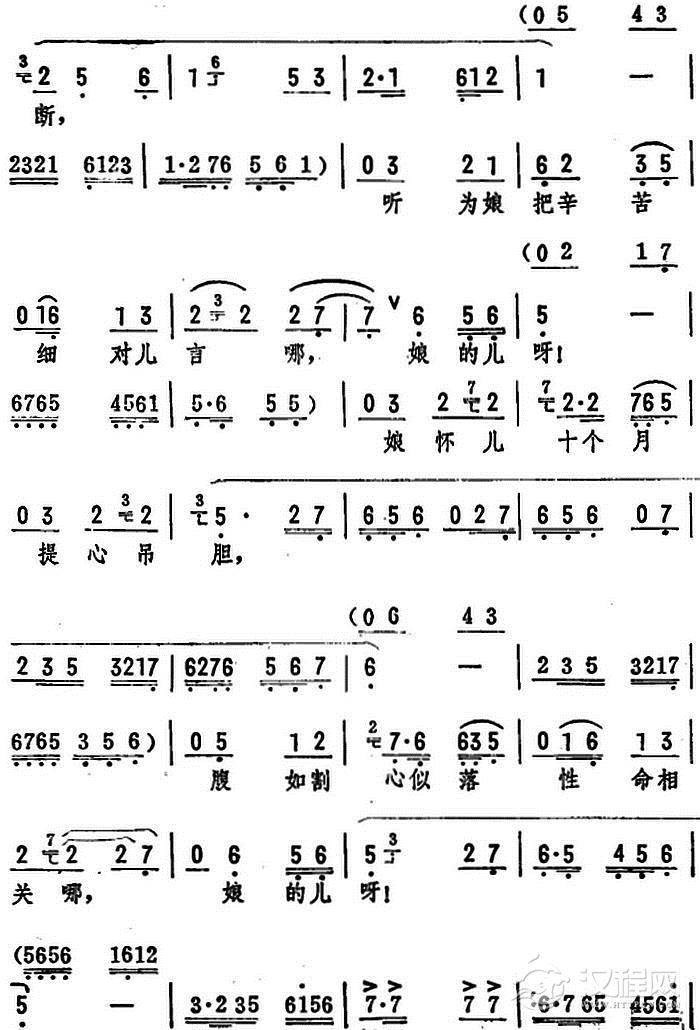 戏曲曲谱提起来我李氏三娘好悲伤(《井台会》选段)