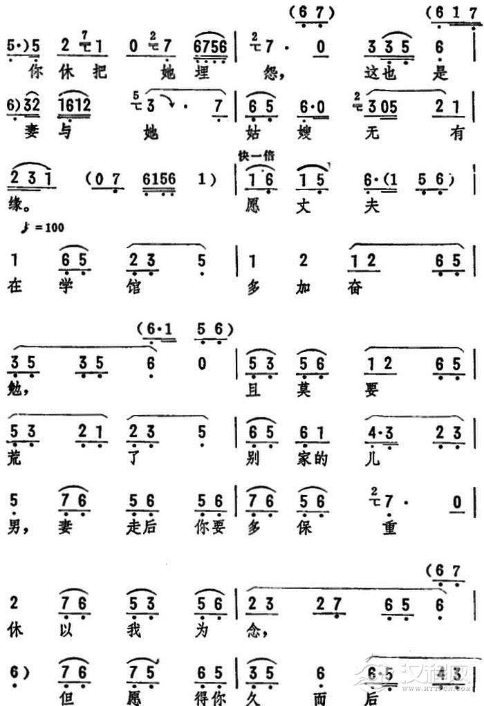 戏曲曲谱买不来的东西为妻不要(《摔子劝夫》选段)