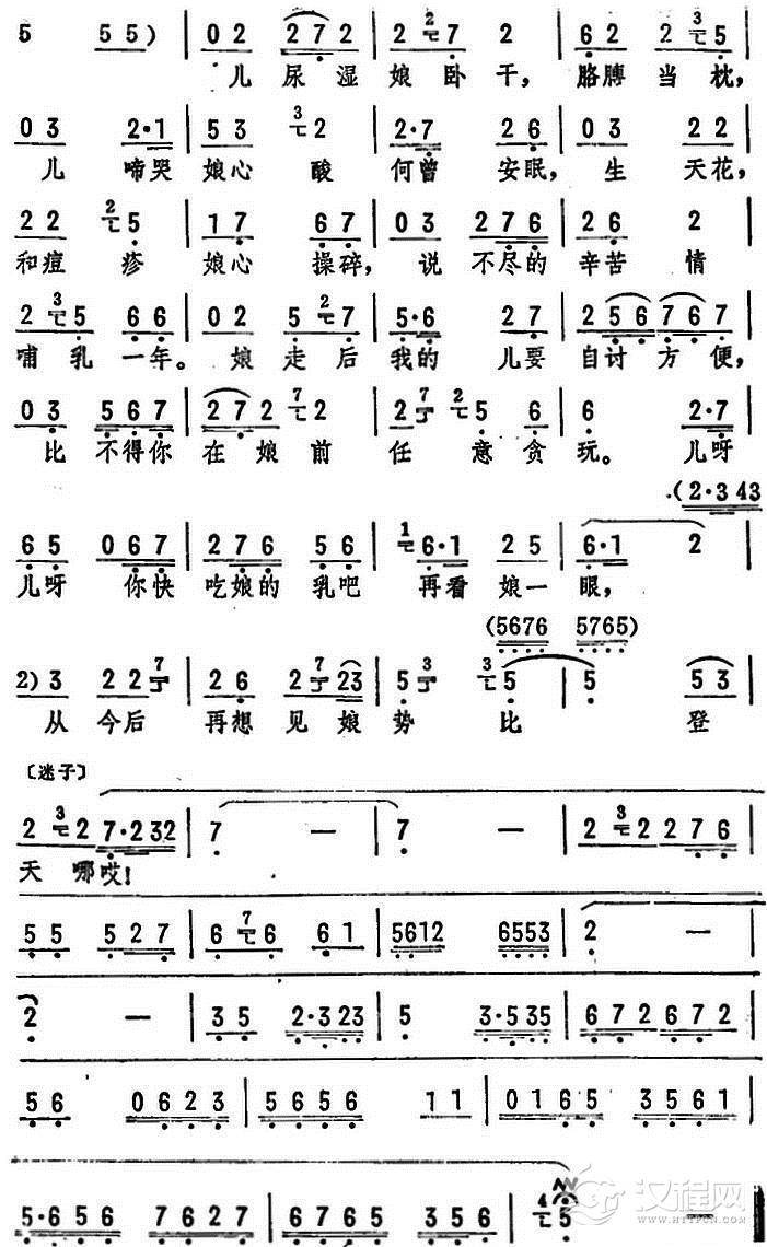 戏曲曲谱我儿成亲娘心放下(《田螺姑娘》选段)