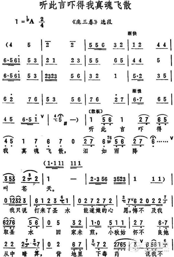 戏曲曲谱狂风吹 雪花落(《庞三春》选段)