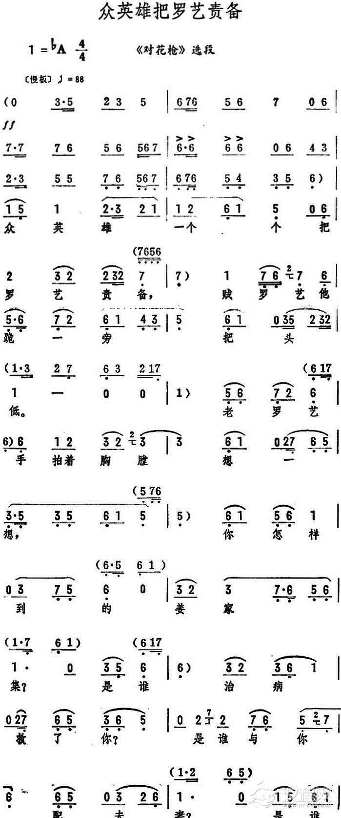 戏曲曲谱小罗成你莫要太任性(《对花枪》选段)