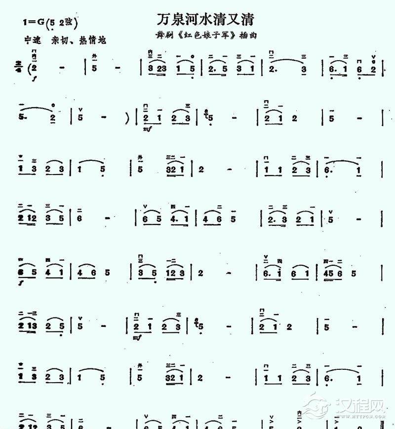 二胡谱【万泉河水清又清】