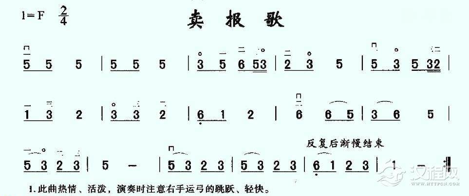 二胡谱【卖报歌】