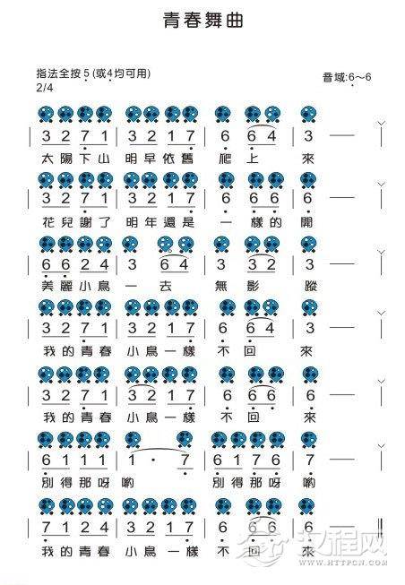 简易陶笛歌曲青春舞曲乐谱指法教学