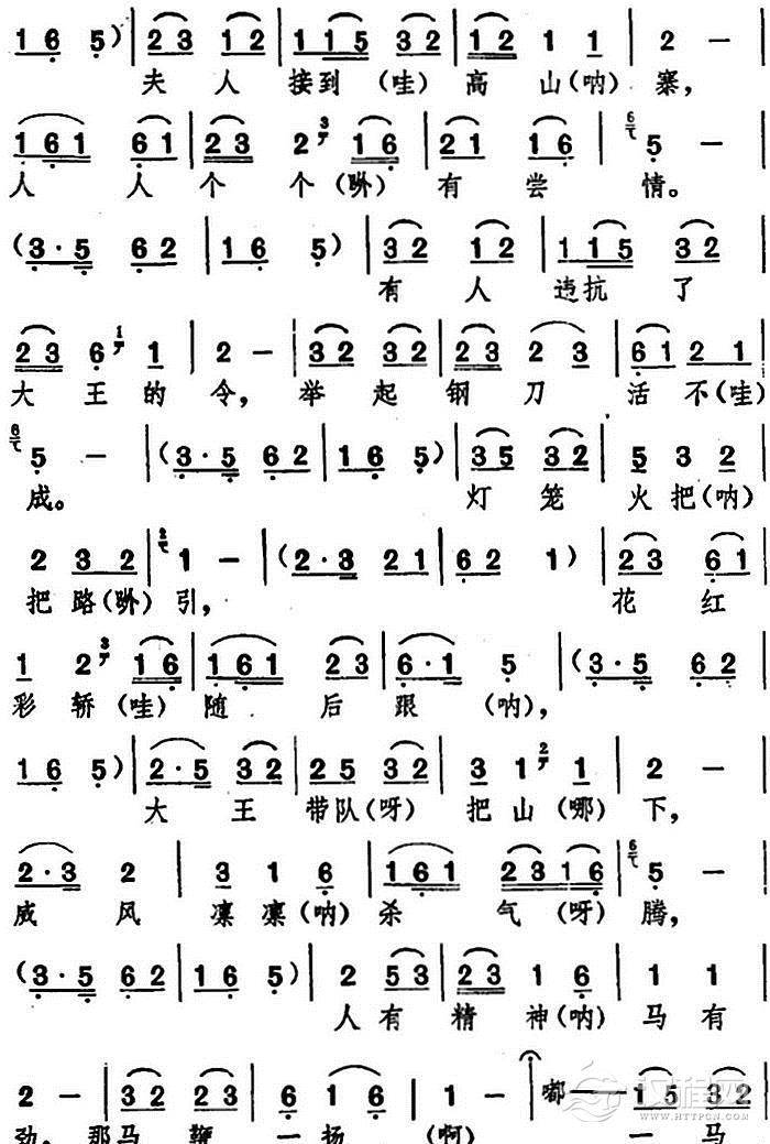 戏曲曲谱乘月光瞭敌营山高势险(《杨门女将》选段)