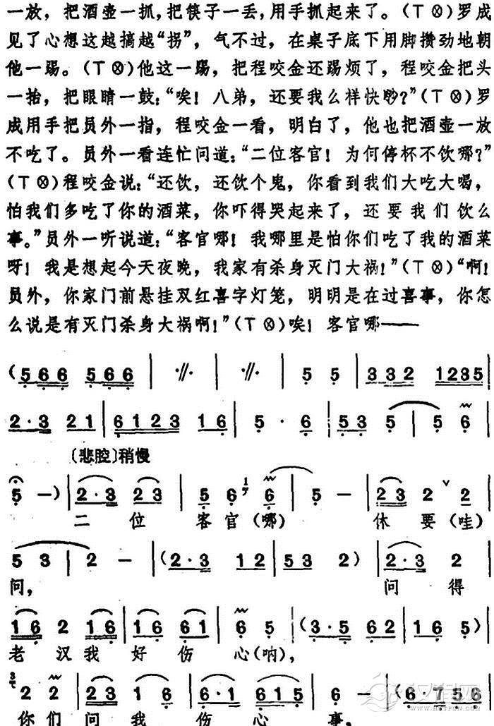 戏曲曲谱冯魁和李金莲对唱(《冯魁卖妻》选段)