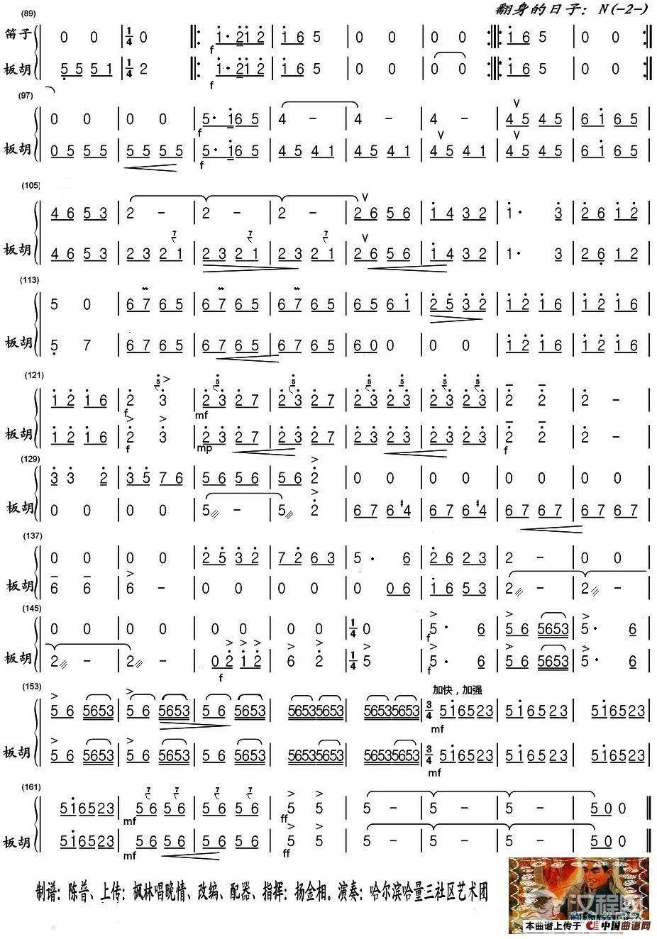 曲谱大全《翻身的日子》民乐合奏板胡分谱1