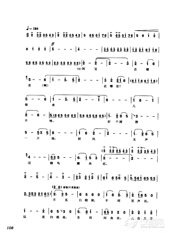 戏曲曲谱手抚琴儿心悲惨