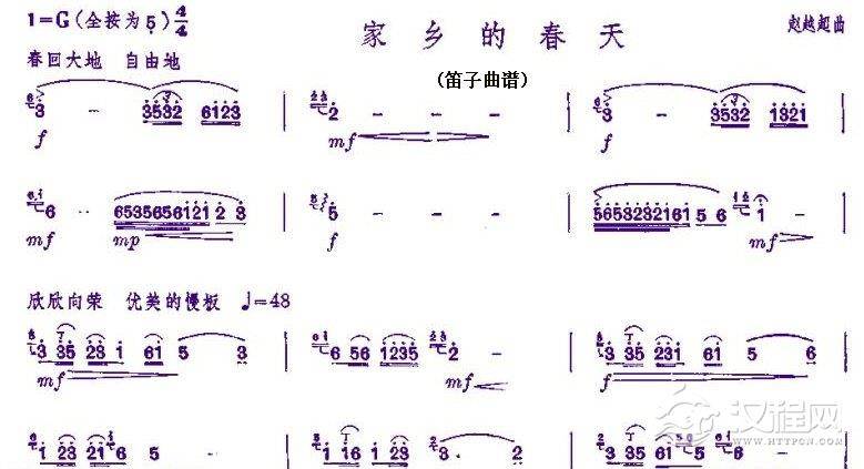 竹笛谱【家乡的春天】