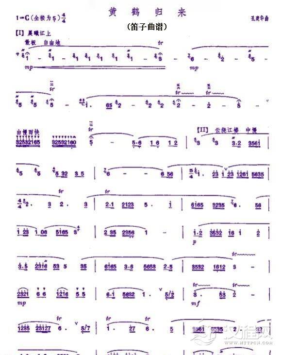 竹笛谱【黄鹤归来】