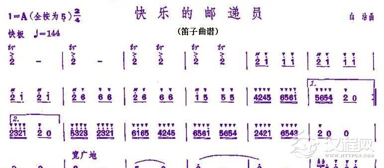 竹笛谱【快乐的邮递员】