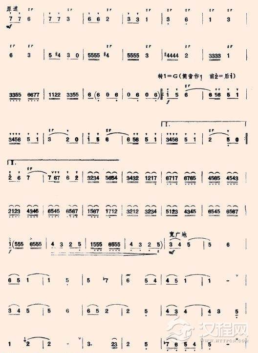 古筝谱【美丽的微山湖】