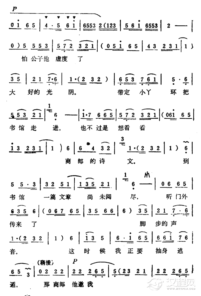 戏曲曲谱小丫鬟上楼来对我言讲(《秦雪梅·观文》选段)