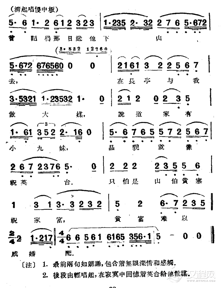 戏曲曲谱回忆(电影越剧《梁山伯与祝英台》选曲)