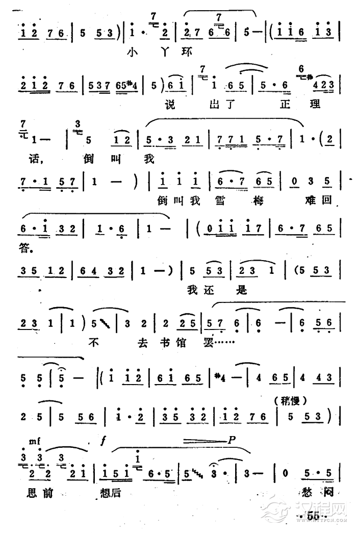 戏曲曲谱小丫鬟上楼来对我言讲(《秦雪梅·观文》选段)