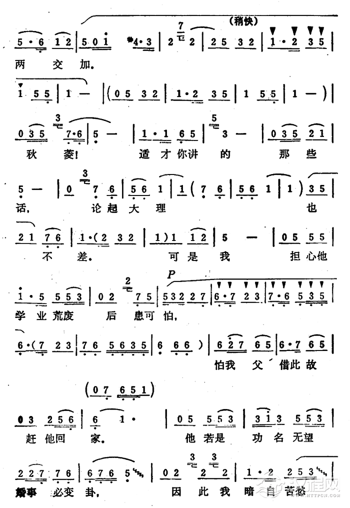 戏曲曲谱老爹爹莫动怒(《秦雪梅·训女》选段))