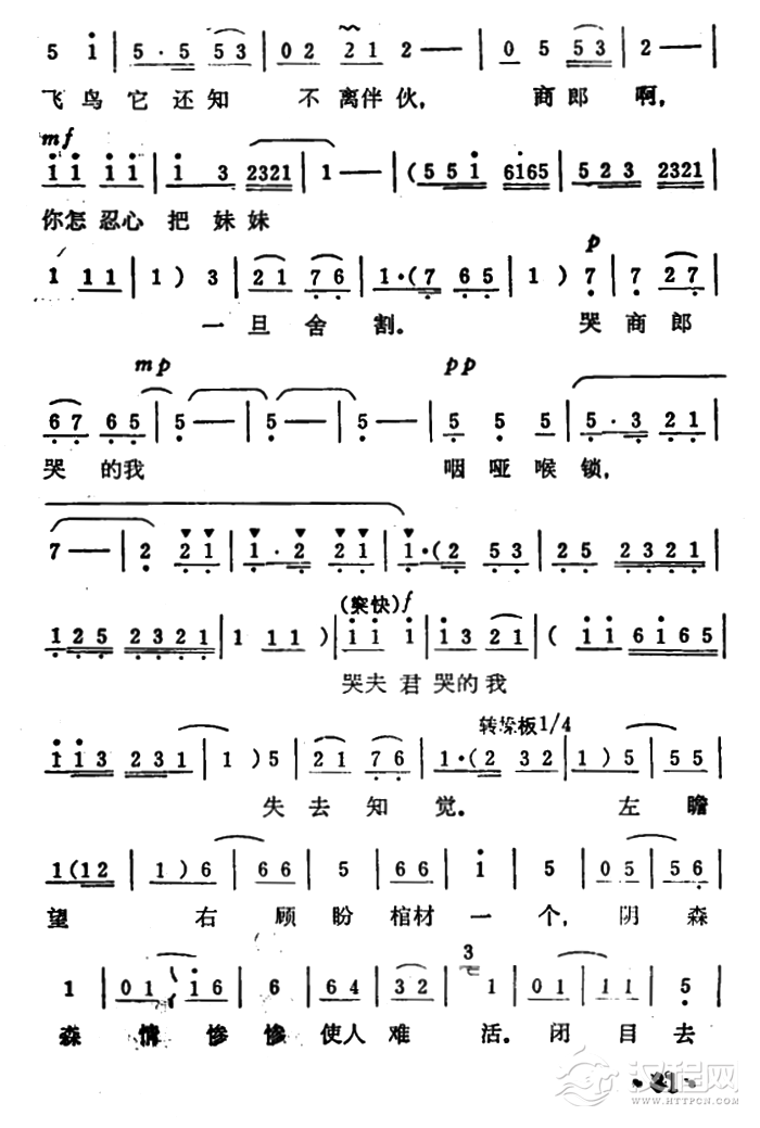 戏曲曲谱哭一声商公子啊(《秦雪梅·吊孝》选段)