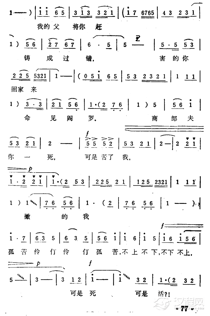 戏曲曲谱十六年我苦思梦想(《井台会》选段)