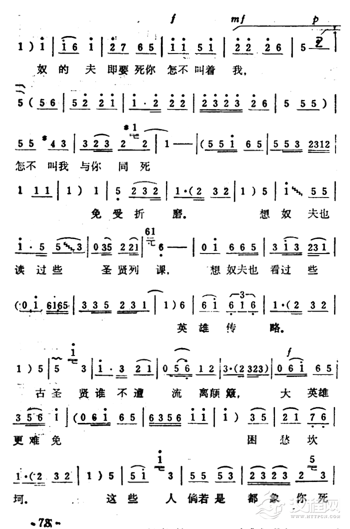 戏曲曲谱一句话恼得我火燃双鬓(筱俊亭演唱版)(《杨门女将》选段)
