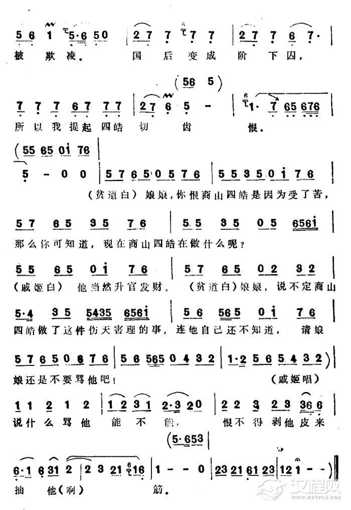 戏曲曲谱十六年我苦思梦想(《井台会》选段)