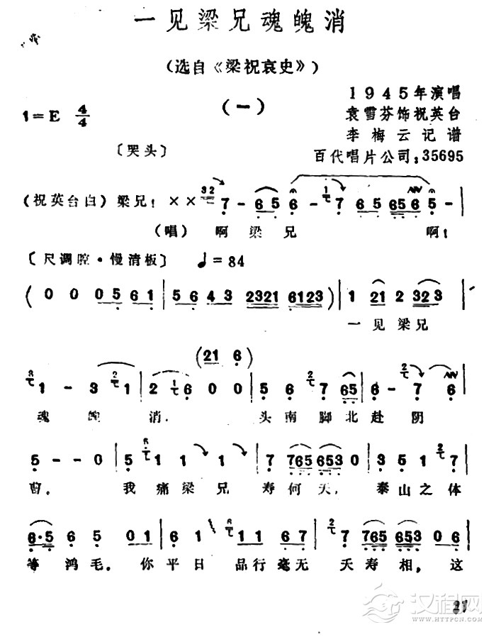 戏曲曲谱回忆(电影越剧《梁山伯与祝英台》选曲)