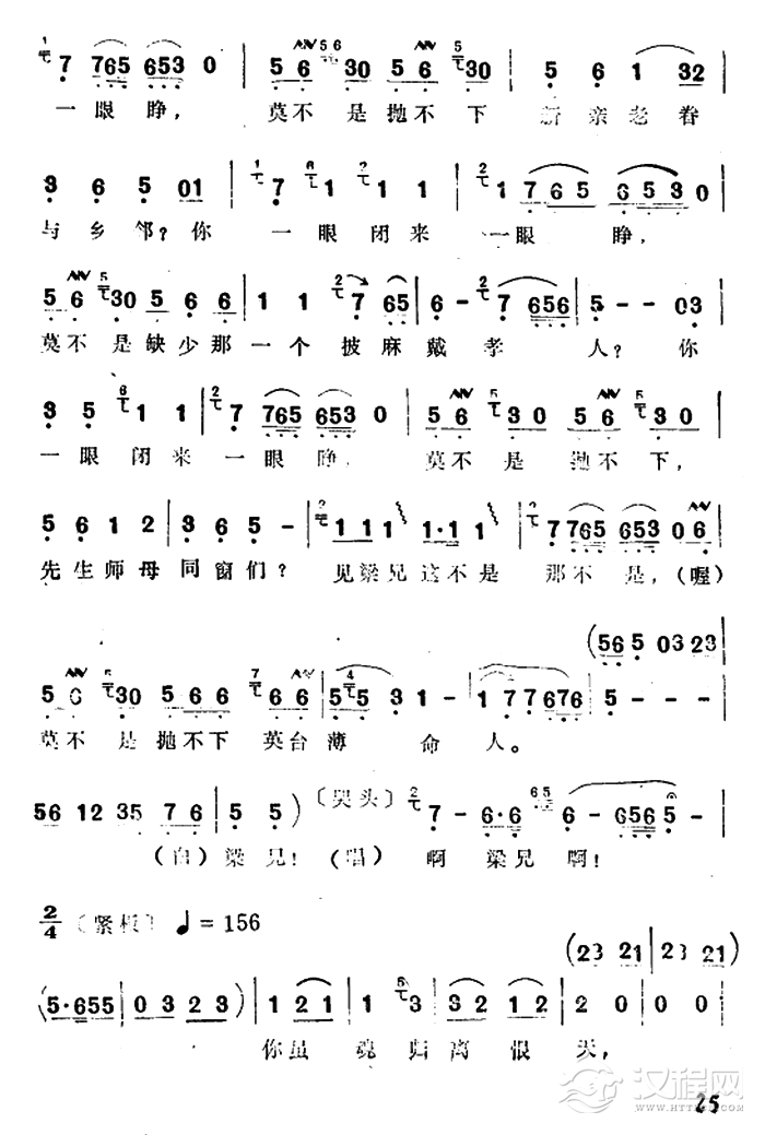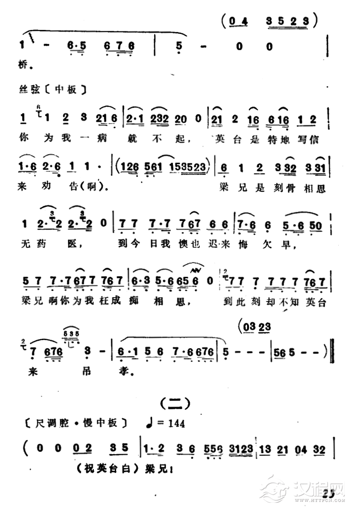戏曲曲谱临终(电影越剧《梁山伯与祝英台》选曲)