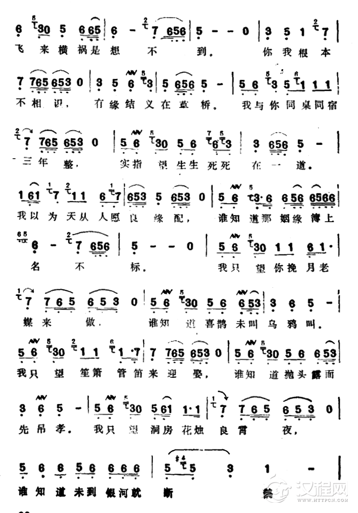 戏曲曲谱断肠人越想越断肠(选自《断肠人》)