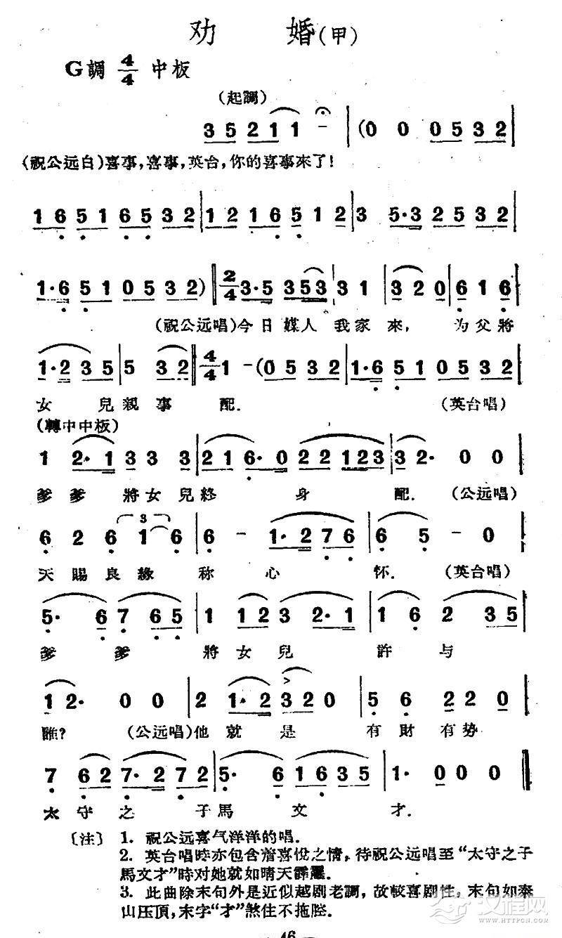 戏曲曲谱访祝(电影越剧《梁山伯与祝英台》选曲)