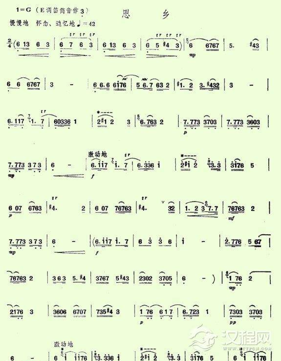 笛谱【思乡】