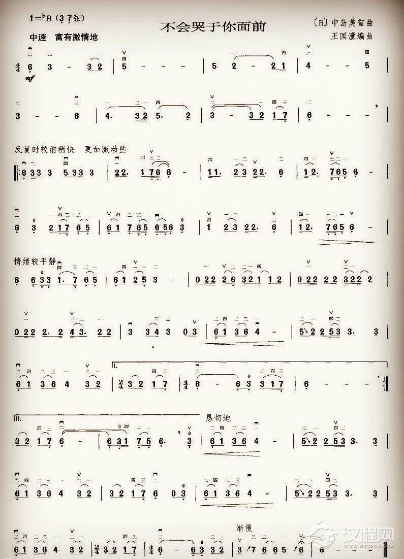 二胡谱【不会哭于你面前】