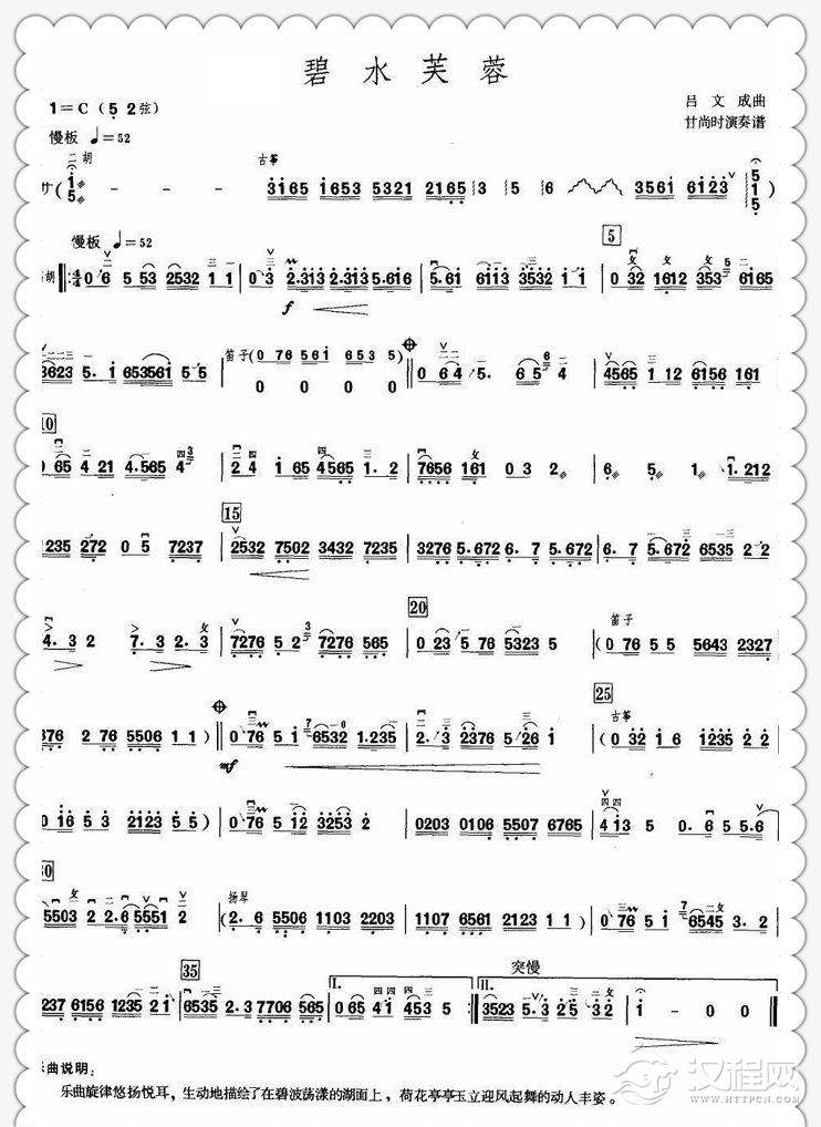 二胡谱【碧水芙蓉】