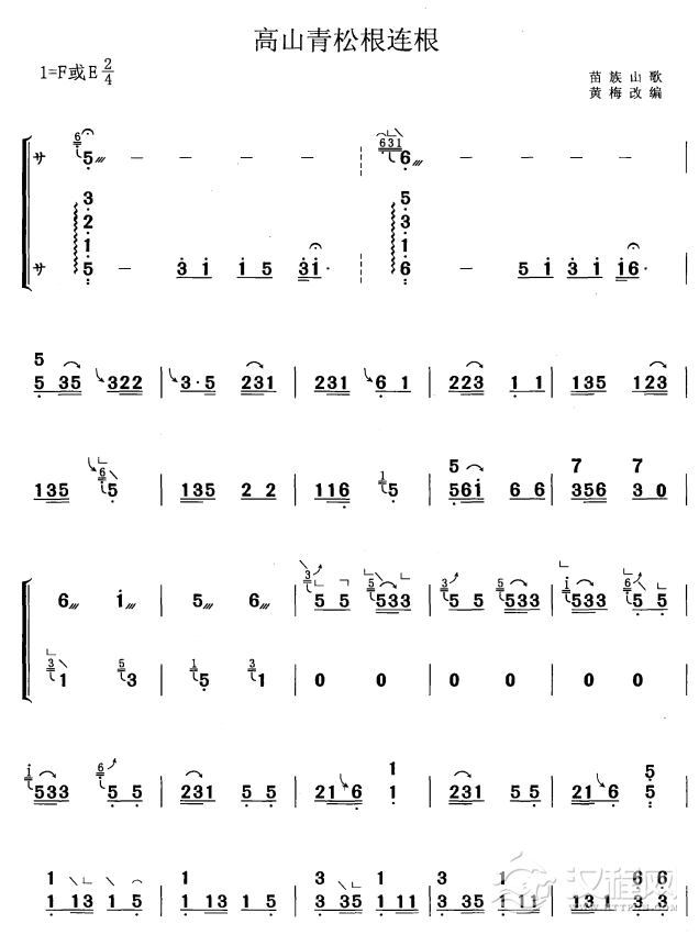 曲谱大全高山青(大三弦分谱)