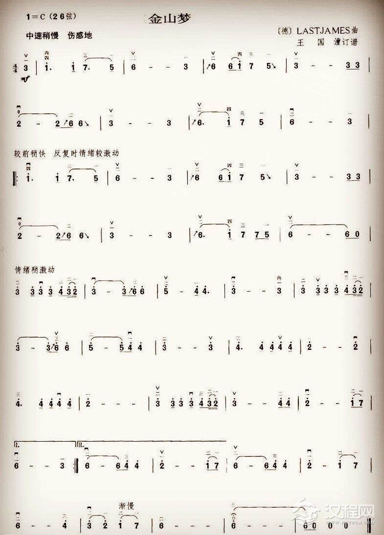 古筝谱《彩云追月》