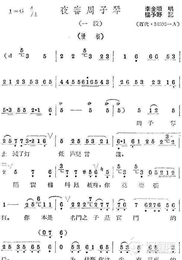 戏曲曲谱玉堂春跪至在督察院(《玉堂春·三堂会审》选段、苏三唱段、李维康演唱版、琴谱)