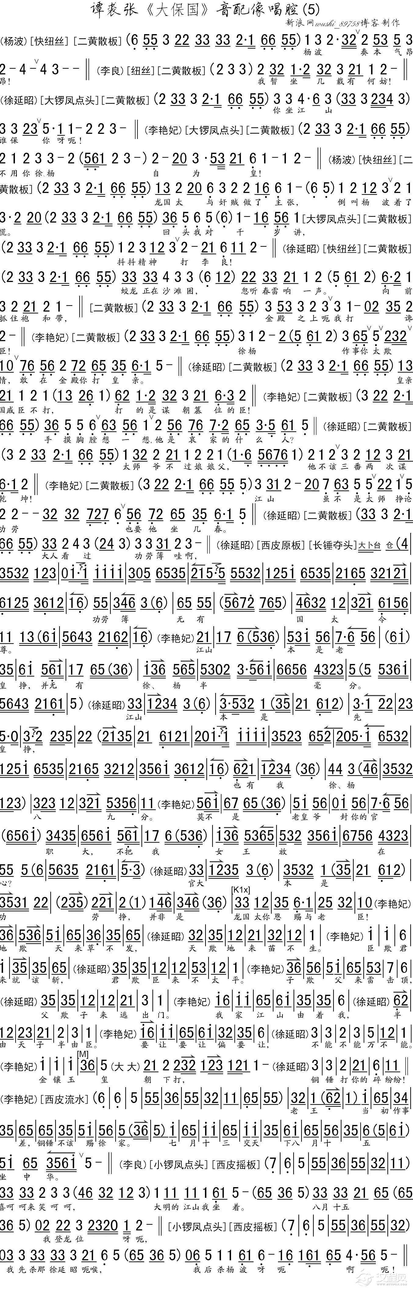 戏曲曲谱谭裘张《大保国》音配像唱腔之三(琴谱)