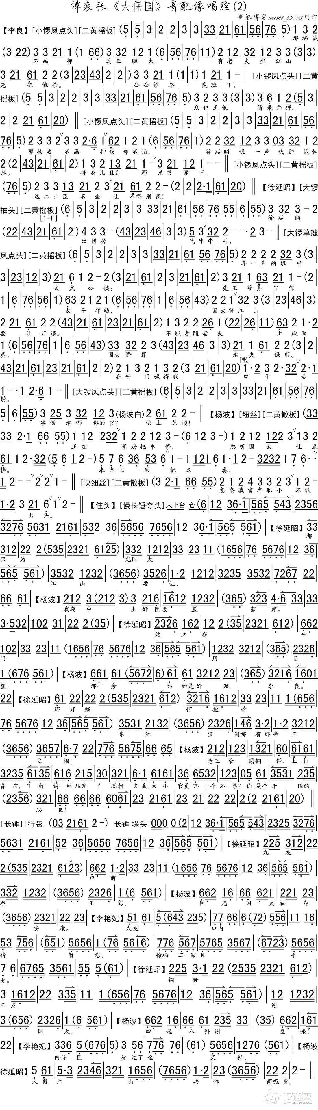 戏曲曲谱谭裘张《大保国》音配像唱腔之一(琴谱)