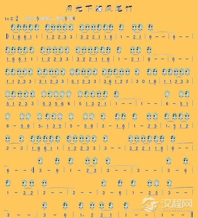 埙谱【月光下的凤尾竹】