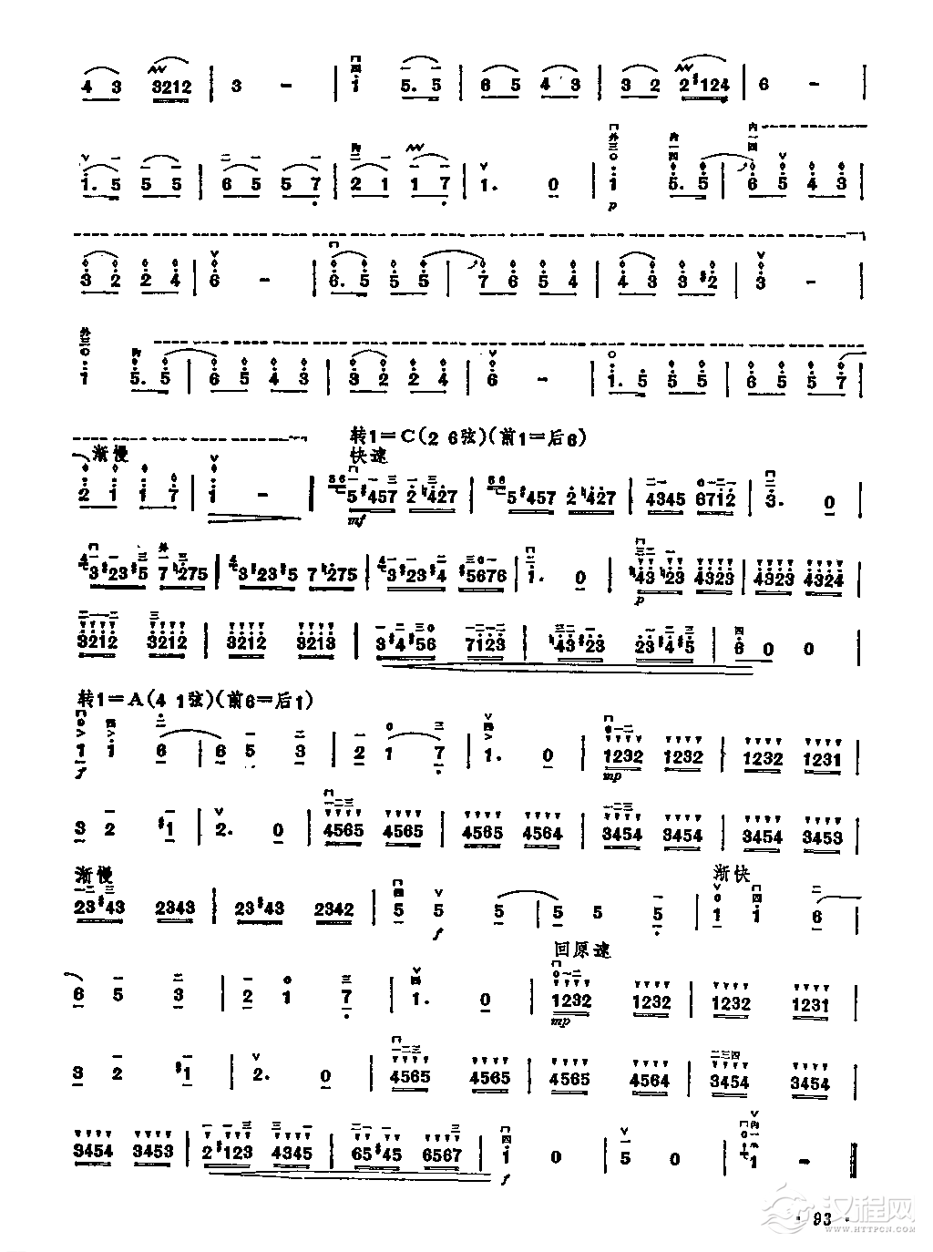 古筝谱《彩云追月》