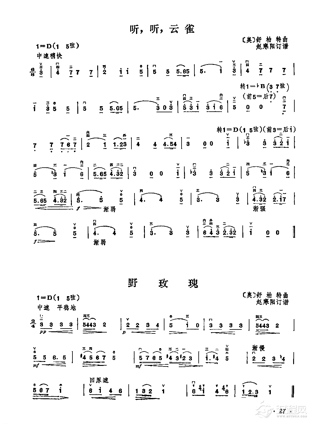 曲谱大全二胡演奏世界名曲100首025【听,听,云雀】赵寒阳选编