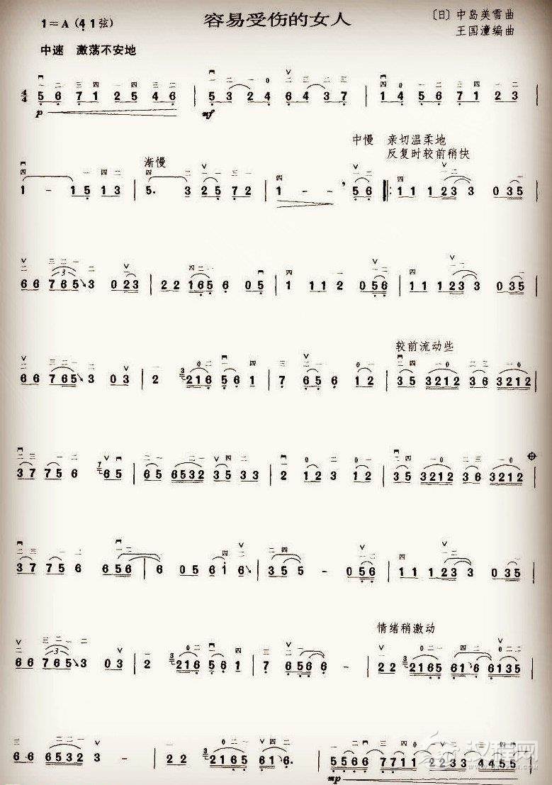 二胡谱【容易受伤的女人】