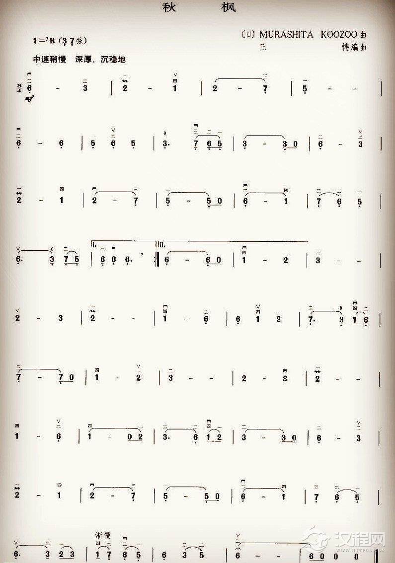 曲谱大全二胡独奏谱【秋菊曲】