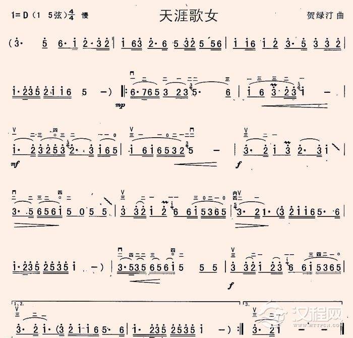 二胡谱【天涯歌女】