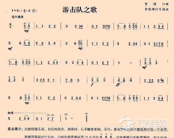 二胡谱【游击队之歌】