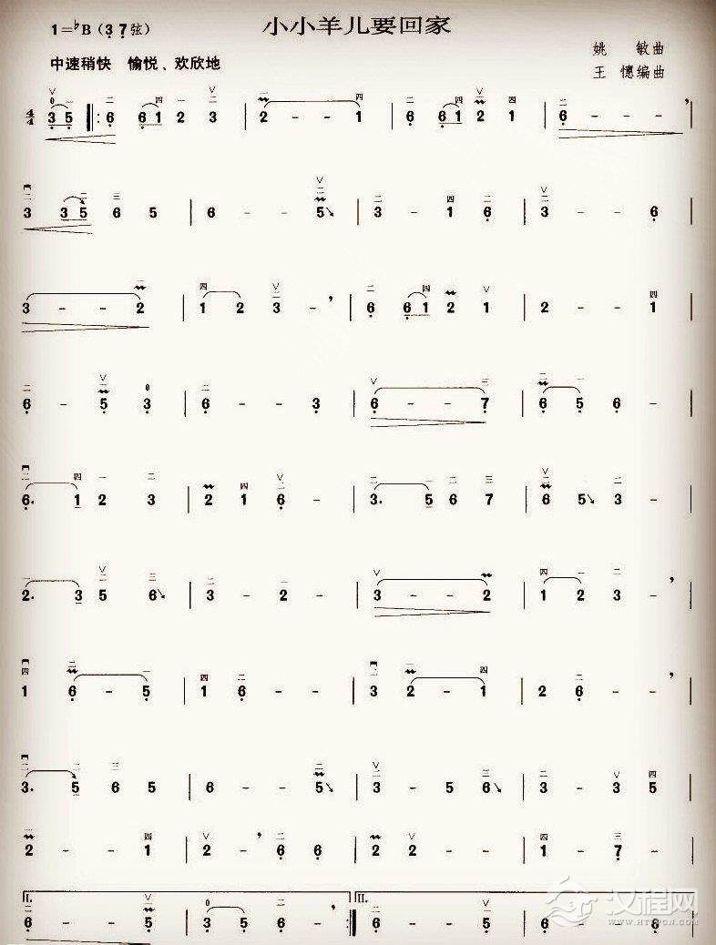 二胡谱【小小羊儿要回家】