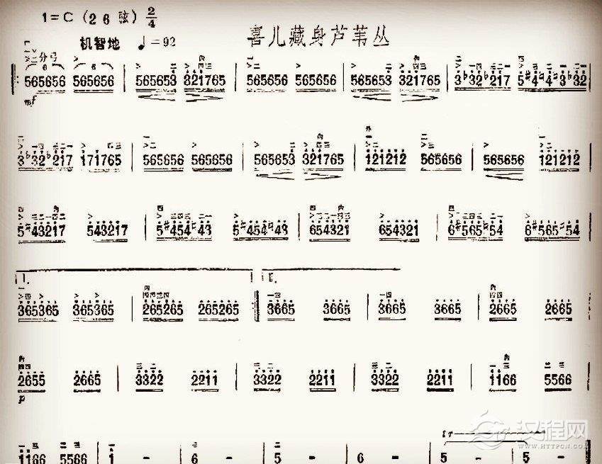 二胡谱【喜儿藏身芦苇丛】