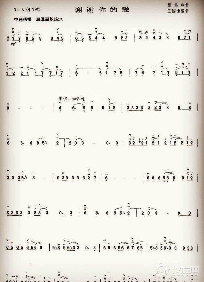 二胡谱【谢谢你的爱】