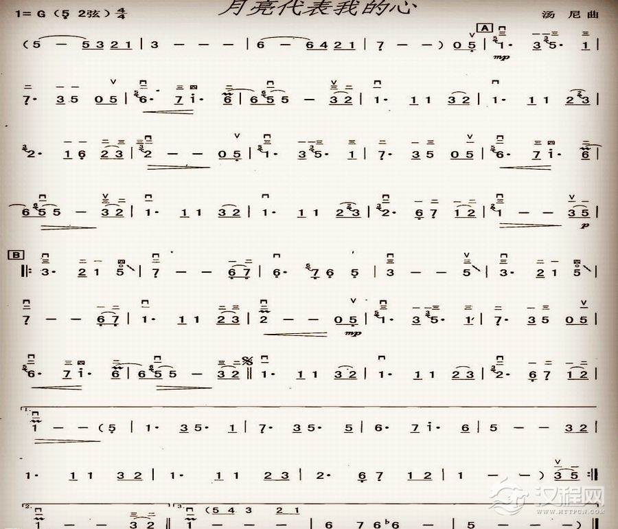 二胡谱【月亮代表我的心】
