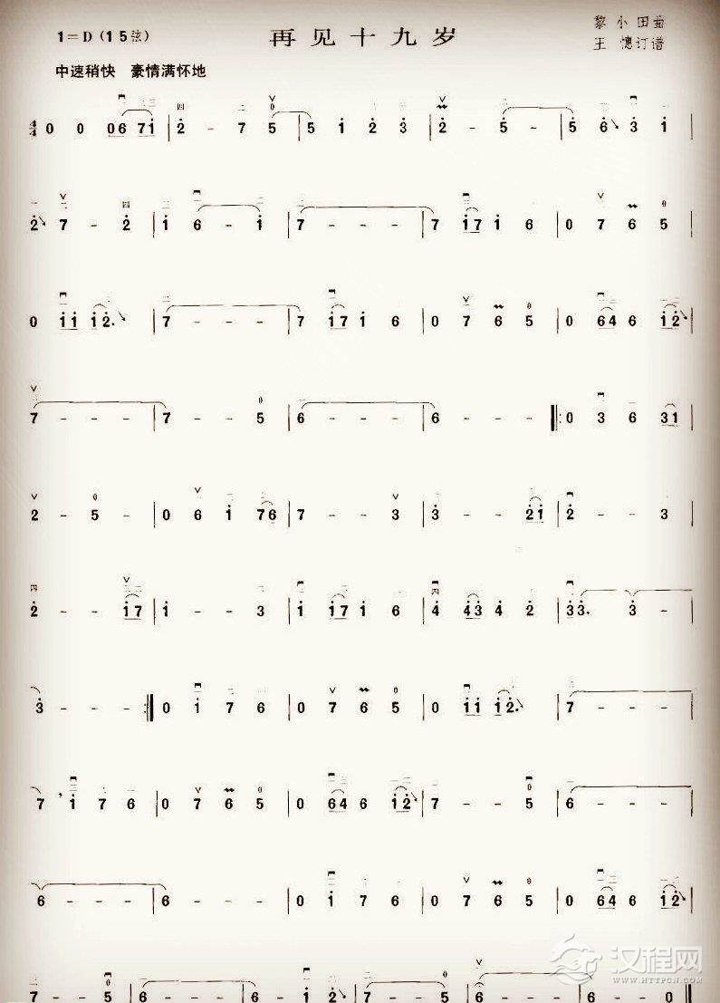 二胡谱【再见十九岁】