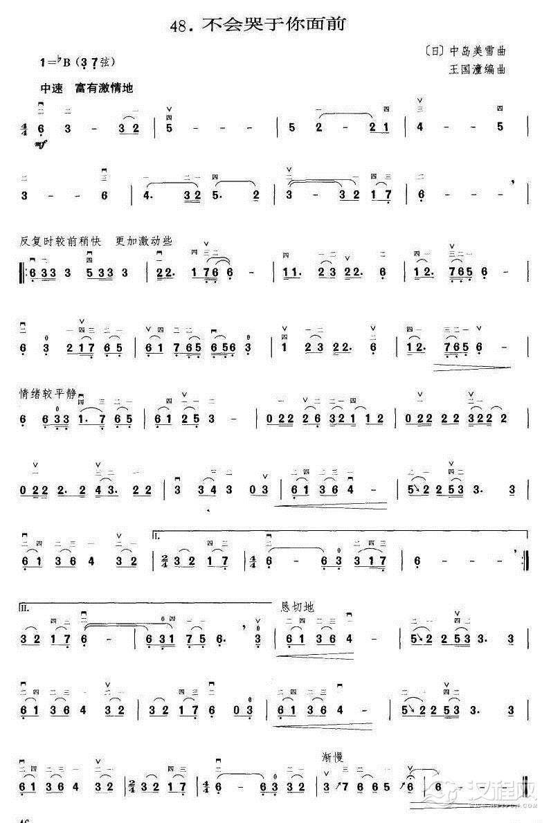 曲谱大全春风(古琴谱 降B调 简谱+减字谱)
